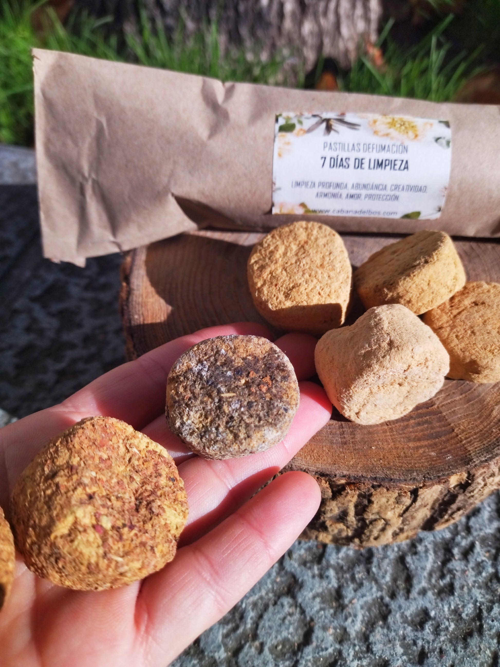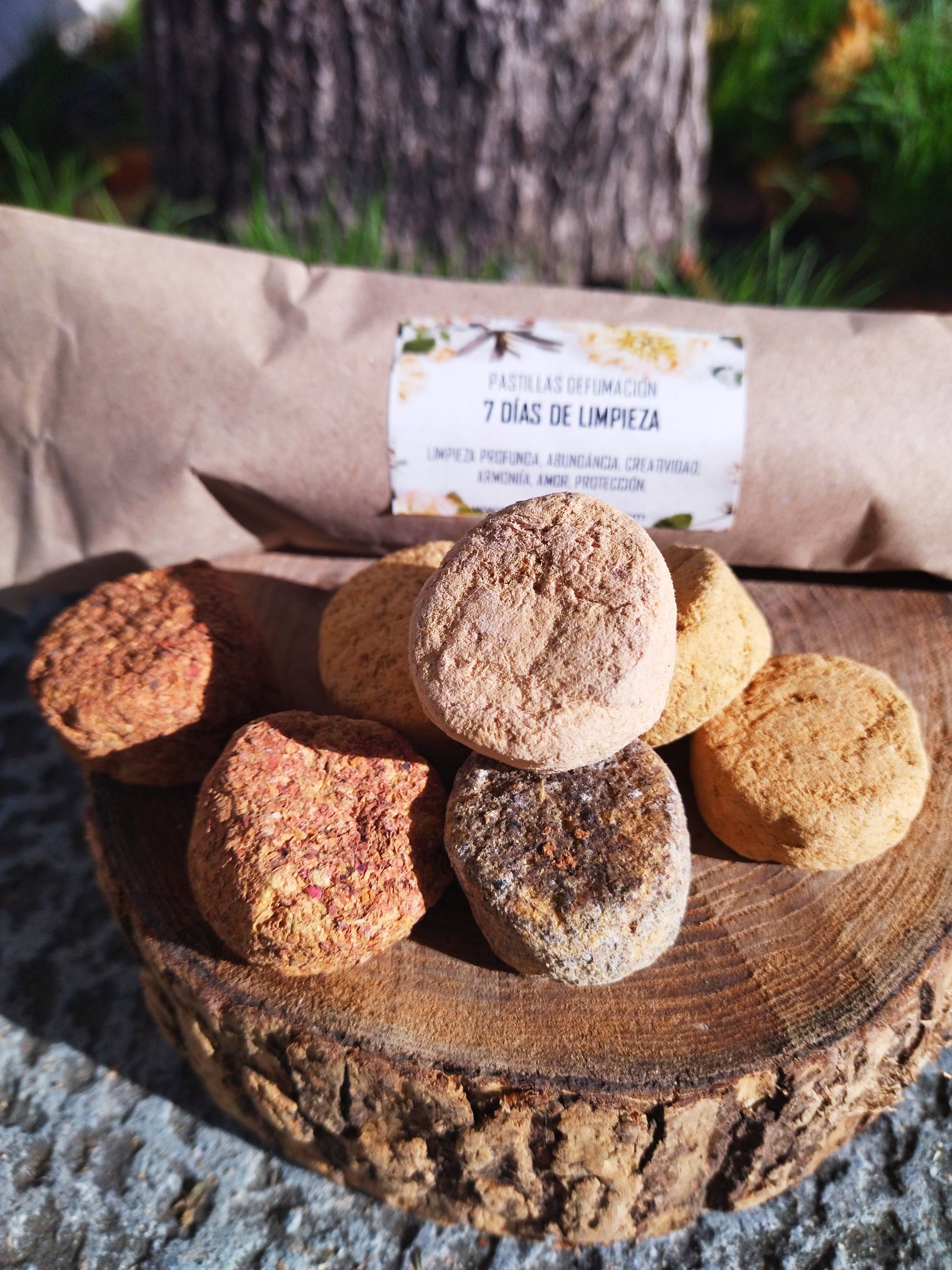 En este kit ritual encontrarás 7 pastillas de defumación, cada una con una mezcla de plantas especial para trabajar diferentes aspectos energéticos.