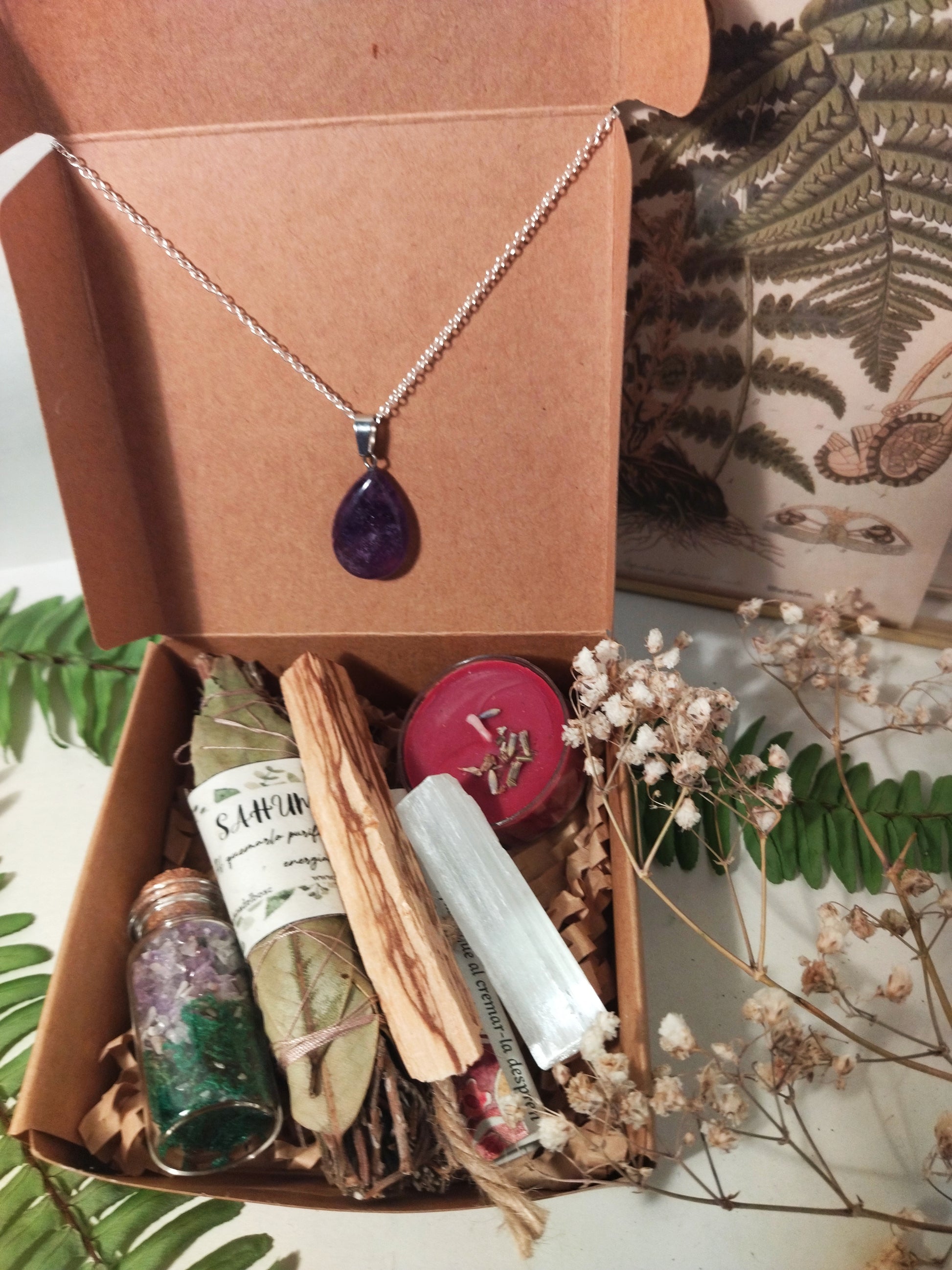 * Ampollita y collar con Amatista, calmará y equilibrará nuestro cuerpo y alma. La Amatista ayuda a encontrar estabilidad emocional y llenarnos de pensamientos positivos, constructivos y de paz. Protectora de la negatividad.