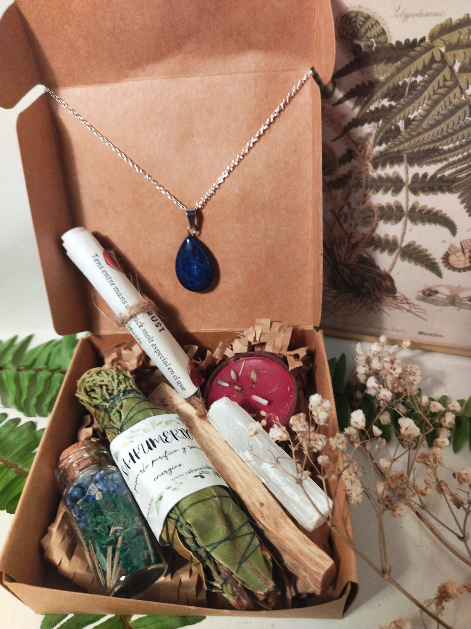 * Ampollita y collar con Lapislázuli que nos ayudarán a equilibrar y escuchar nuestra voz interior y a eliminar energías negativas aportando paz y confianza en nuestra vida.